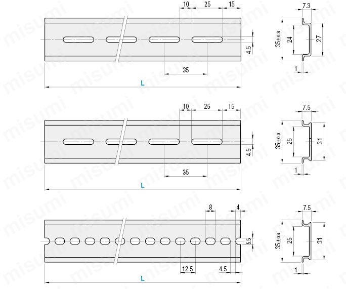 穴ピッチは35mmまたは50mmが主流ですが、ダクトの穴ピッチ(50mmが多い)と合わせることで、中板のタップ穴設計時にピッチを統一でき、設計作業が効率化します。
